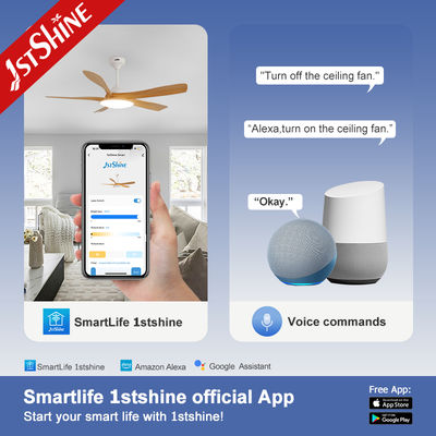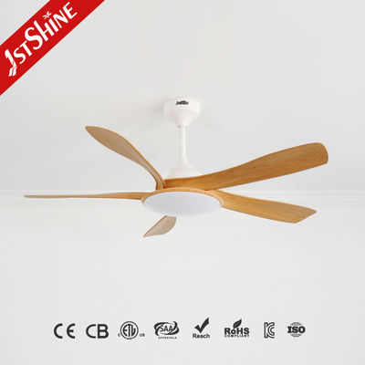 Equipped with a high-efficiency DC motor, this ceiling fan delivers strong airflow while maintaining ultra-quiet operation. Its five plastic blades are designed for durability and consistent performance, finished in a natural wood grain tone that adds warmth and sophistication to any space.